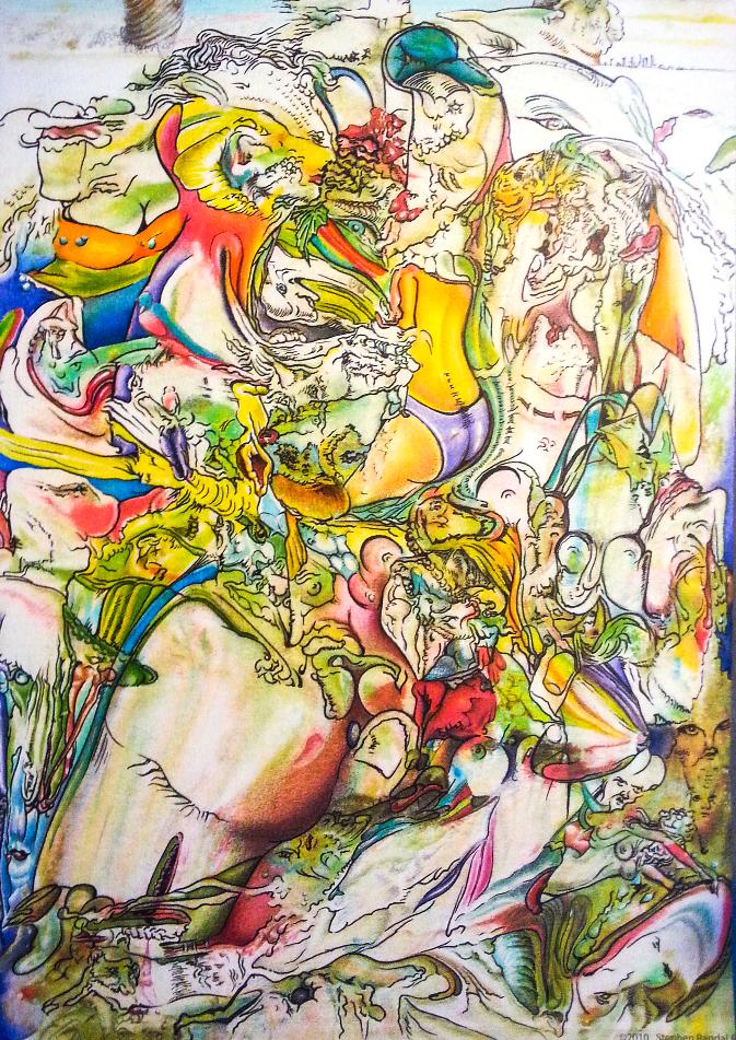 Watercolour and Ink on Archival Ink Print of "Monoprint II" on 13 X 18 Paper.