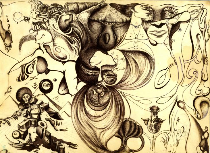 Original drawing with ballpoint pen on 9 X 12 glossy paper.